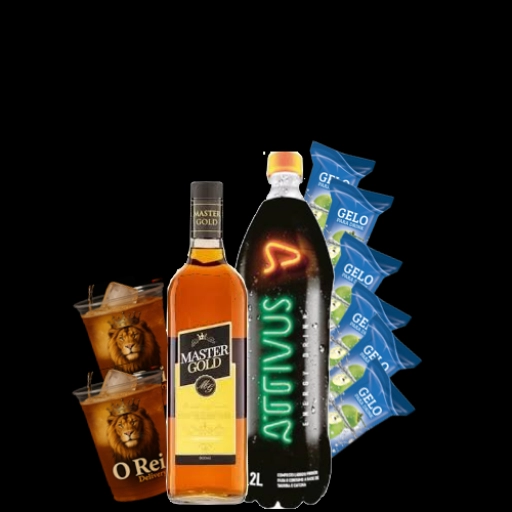 Whisky (MasterGold ou RoyalBlue), 1 gelo saborizado e energético (disponível na casa).