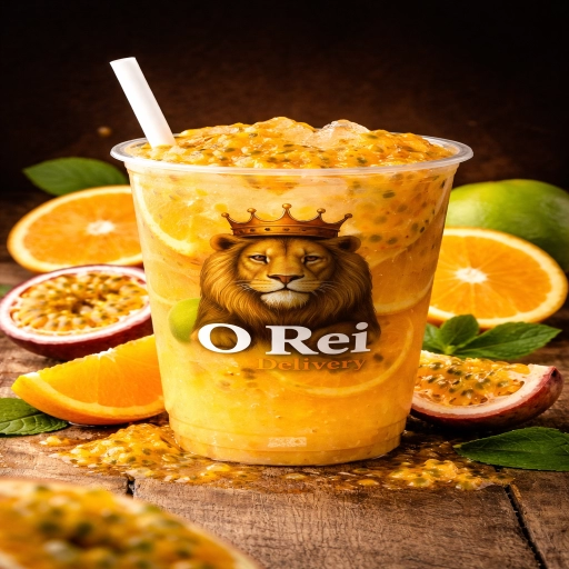 Drink feito com polpa de maracujá, suco da laranja, gel... Ver completo